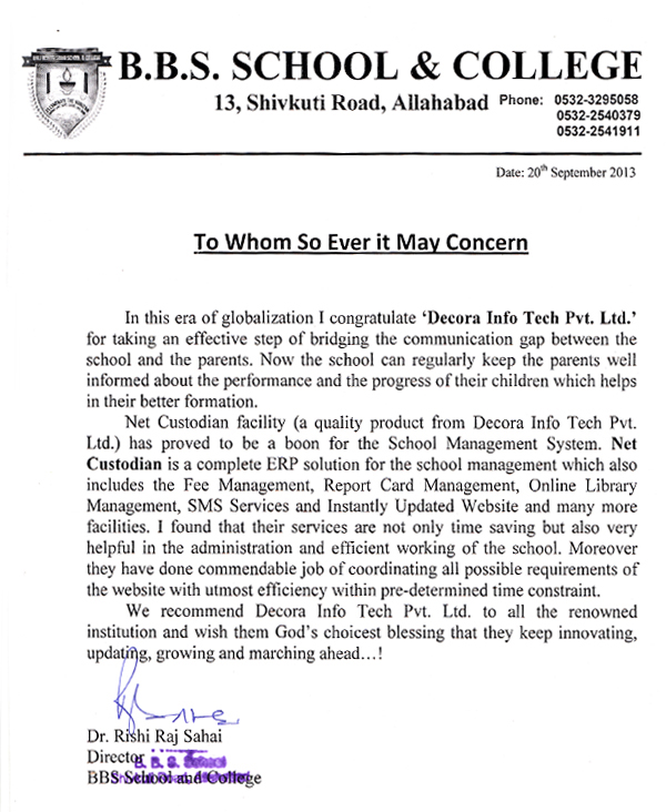 This is to certify that we, Devprayag School & college, Allahabad are really happy