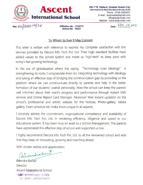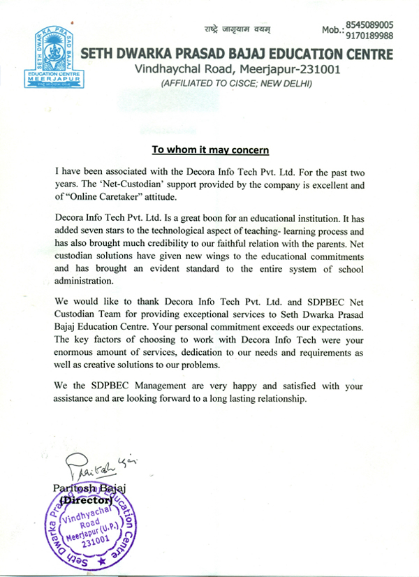 I feel delighted to recommend the Decora Info Tech Pvt. Ltd. To all the other schools